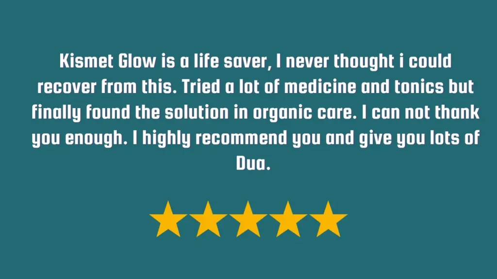 Kismet Glow is a life saver, I never thought i could recover from this. Tried a lot of medicine and tonics but finally found the solution in organic care. I can not thank you enough. I highly recommend you and give you lots of Dua
